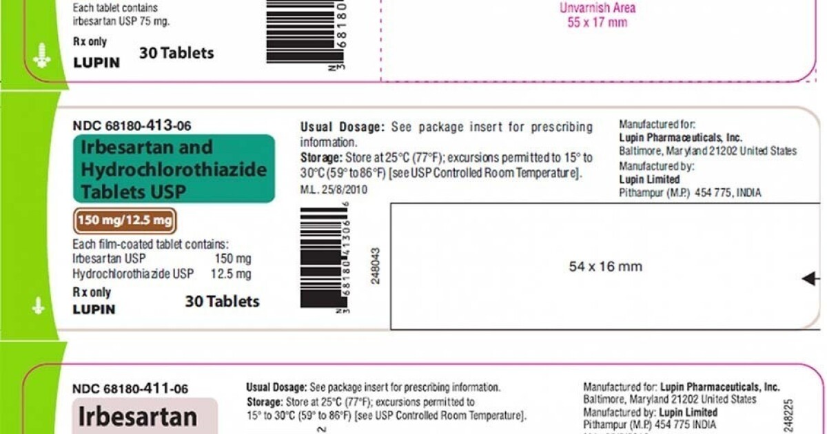 The Food and Drug Administration said late last week that Lupin is voluntarily recalling certain dosages of irbesartan tablets and irbesartan and hydrochlorothiazide tablets. Both are used to treat hypertension, or high blood pressure, and were distributed in 30- and 90-count bottles nationwide.